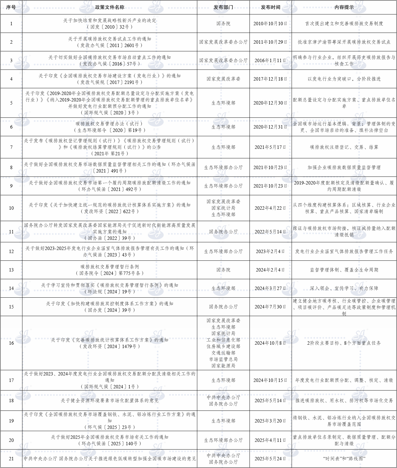 我国碳排放权交易市场主要政策汇编如下: